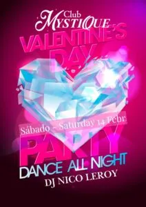 Noche temática «FIESTA DE SAN VALENTÍN» @mystique **EL SÁBADO ES UNA BUENA NOCHE PARA LAS NUEVAS PAREJAS** !!!! CÓDIGO DE VESTIMENTA ESTA NOCHE «SEXY/LENCERÍA/TRANSPARENTES» !!! Para todos los que aman vestirse/desvestirse. Ven y cámbiate con tu lencería/látex/cuero/ropa de club transparente sexy/medias sexys, etc. más sexy. ¡¡¡VÍSTETE PARA IMPRESIONAR!!! ** Éxitos de la música dance española e internacional DJ NICO LEROY** Cada semana vienen más parejas y mujeres solteras a probarlo y repetir. El ambiente es único, divertido y diferente. Cada semana otras personas y cada día otro ambiente. «¡¡SIN COMPROMISOS!! Para todas las parejas y mujeres solteras de espíritu libre en el estilo de vida swinger, esta es una gran oportunidad para «no estar solo»; esta noche estarás acompañado por parejas y Mujeres solteras solas en un ambiente muy agradable con solo respeto – experimenta nuevas sensaciones con tu pareja y comparte con otros. ENTRADA: Pareja: 35 € + 2 bebidas o 45 € + 4 bebidas Mujer