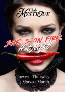 SHE´S ON FIRE/HOT NIGHT noche temática , Durante toda la noche, las parejas, hombres y mujeres solteros pierden su timidez y se desinhiben por completo Para parejas, hombres y mujeres solteros, mujeres solteras, LGTB y cualquier persona que ame el sexo. Cada semana vienen más parejas, hombres y mujeres a probarlo y repetir. El ambiente es único, divertido y diferente. Cada semana otras personas y cada día un ambiente diferente. ¡Todo es posible – Sin obligaciones! Para todas las personas liberales en el estilo de vida swinger, esta es una gran oportunidad para «no estar solo» esta noche serás original por parejas y solteros con respeto por la soledad … conoce nuevas sensaciones con tu pareja y comparte otras. ¡¡¡VÍSTETE PARA IMPRESIONAR!!!