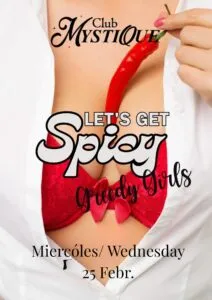 Noche temática PICANTE @mystique, una noche cachonda y caliente. No seas tímido, déjate llevar… una buena noche para tríos y gang bangs. Para parejas, hombres solteros, mujeres solteras, LGTB y cualquier persona que ame el sexo. Para todas las personas de mente liberal en el estilo de vida swinger, esta es una gran oportunidad para «no estar solo». Esta noche estarás acompañado por parejas y solteros en un ambiente muy amigable con solo respeto… experimenta nuevas sensaciones con tu pareja y comparte con otros. Todo es posible, ¡sin obligaciones! Cada semana vienen más parejas, hombres y mujeres a probarlo y repetir. El ambiente es único, divertido y diferente. Cada semana, otras personas y cada día, un ambiente diferente. ¡VÍSTETE PARA IMPRESIONAR! ENTRADA: Pareja: 30 € + 2 bebidas o 40 € + 4 bebidas Mujer soltera 15 € + 1 bebida Hombre soltero 60 € + 2 bebidas (número limitado) Nuestros servicios: * Depósito de 5 euros (solo en efectivo) para una llave de taquilla, lo recuperarás